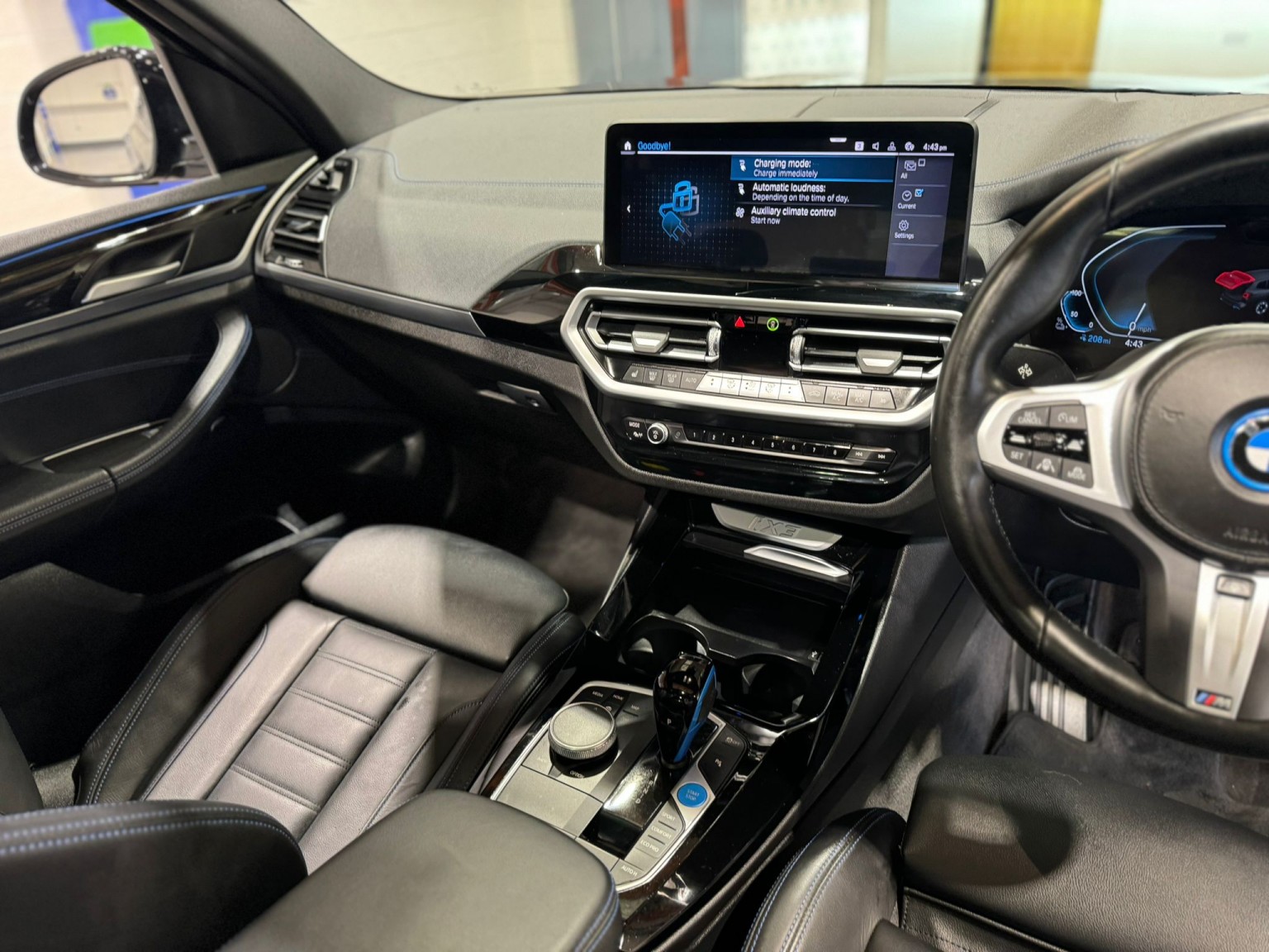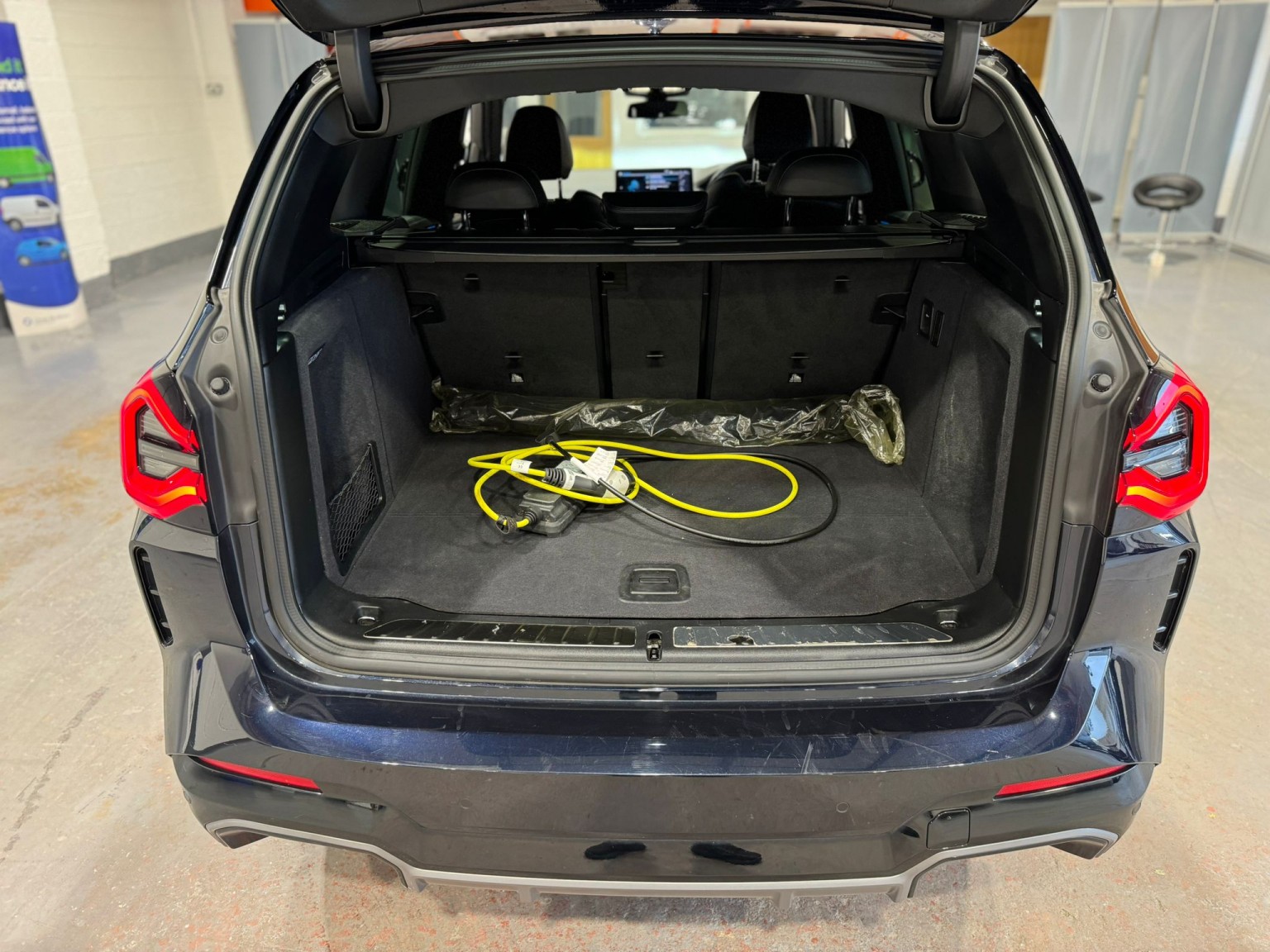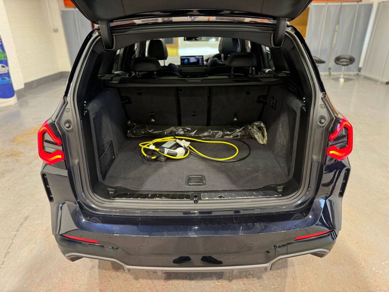 BMW Connected Package Professional, BMW ConnectedDrive Online Services, BMW Legal Emergency Call, BMW Live Cockpit Professional, BMW TeleServices, DAB Digital Radio, Enhanced Bluetooth with Wireless Charging, Power Sockets, Stereo Speaker System, WiFi Hotspot, Widescreen Display, Attentiveness Assistant, BMW iDrive, Brake Pad Wear Indicator, Condition Based Service, Driving Experience Switch, Front and Rear Parking Sensors, Parking Assistant, Reversing Assist Camera, Runflat Indicator, TPMS - Tyre Pressure Monitoring System, 19in Alloy Wheels - Aerodynamic - Jet Black with Bi-Colour Inserts, Air Breather with BMW M logo, Blue Ring Around BMW Logos, Electric Windows - Front, Exterior Mirrors - Electrically Folding with Anti Dazzle, Exterior Trim - High-Gloss Shadowline, Front Bumper - M Sport with iX3 Specific Design with Blue Contents, M Aerodynamic Exterior, M Badging on Front Side - Left and Right, M Sport Package, Panoramic Glass Sunroof, Rear Diffuser in Blue, Roof Rails - Shadow Line High Gloss - Black, Sun Protection Glass, Tyre Repair Kit, Washer Jets - Heated, Welcome Lighting, Adaptive LED Headlights, Follow Me Home Headlight Function, Headlights - Beam Throw Control, High-Beam Assistant, Third Brake Light Using LED Technology, Air Conditioning - Automatic, Ambient Lighting, Armrests, Automatic Operation of Tailgate, Automatic Start-Stop Button, Backrest Width Adjustment for Driver, Centre Lock Switch, Cup Holders - Front x2, Door Sill Strips, Electric Memory Seats, Extended Storage, Floor Mats - Velour, Galvanic Embellisher for Controls, Glove Compartment - Lockable, Headlining - M Anthracite, Heated Seats for Driver and Front Passenger, Heated Steering Wheel, Instrument Panel in Sensatec, Interior Rear-View Mirror with Automatic Anti-Dazzle Function, Interior Trim - High-Gloss Black with Pearl Chrome, Lashing Eyes in Luggage Compartment, Luggage Compartment Lights, Luggage Net, M Sport Leather Steering Wheel, Non Smoker Package, Rain Sensor with Automatic Headlight Activation, Rear Centre Armrest including Two Cupholders, Seat Backrest Adjustment for Rear Seats, Seats - Front Sports, Split Folding Rear Seat, Steering Column Adjustment, Storage Options, Sun Visors with Vanity Mirrors and Ticket Holder, Adaptive Suspension, Charging Cable - Mode 3 - 5m, Multiple-Control-Arm Rear Axle, Power Steering - Electric, Preparation for Adaptive M Suspension, Servotronic Steering, ABS - Anti Lock Braking System, Active Guard Plus, Active Protection, Airbags - Driver and Front Passenger, Airbags - Front Side for Driver and Passenger, Airbags - Head - Front and Rear, Alarm System, Bumper System Front and Rear - Replaceable Deformation Elements for Impacts Up to 15kmh, CBC - Cornering Brake Control, Closing System with Central Locking, Crash Sensor, DSC - Dynamic Stability Control Plus, DTC - Dynamic Traction Control, Driving Assistant Professional, Dynamic Brake Lights, Electro Mechanical Parking Brake, Electronic Vehicle Immobiliser, Reversing Light, Safety Battery - Terminal Clamp, Side Impact Protection, Warning Triangle, eDrive Exterior Sound